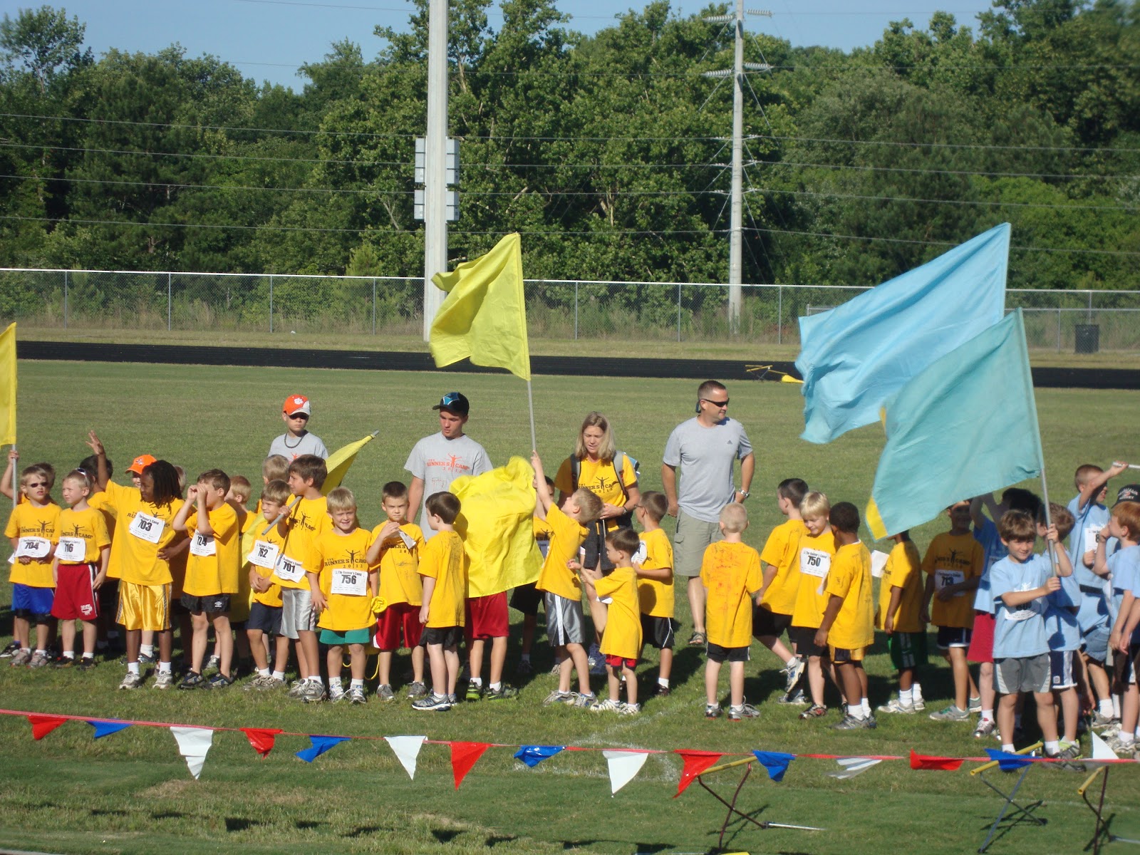 | You can see Aaron on the right side of the picture getting ready to run the 800m which is about a half mile. |